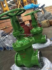 結構特點及用途:   1 、本產品的閥蓋填料室具有水密封結構,當接口通入壓力0、6-1MPa 的水時,可使系統(tǒng)與 大氣隔離,保證系統(tǒng)具有良好的氣密性。   2 、 DS/Z 型系列采用雙閘板雙向彈性密封、啟閉靈活、迅速、密封可靠。   3 、產品結構簡單、緊湊合理、檢修方便,使用壽命長   4 、在管路上坐啟閉裝置用,必須處于全開或半開狀態(tài),不得用于調節(jié)流量。   5 、閥門連接形式分法蘭、焊接兩種,驅動方式為手動、電動兩種。   6 、 DS 系列水封閥門適用于公稱壓力 ≦10.0MPa ,工作溫度 ≦ 425℃ ,工作介質為水、蒸汽、 油田和非腐蝕性氣體的管路上作啟閉裝置用,尤其適用于火電廠汽機真空冷凝系統(tǒng)。   主要性能規(guī)范 Chief property and specification 試驗壓力 Test pressure  公稱壓力PN/MPa 1.0 1.6 2.5 4.O 6.4 1O.0 殼體強度試驗 Shell Strength test 1.5 2.4 3.8 6.O 9.6 15.0 密封試驗 Seal test 1.1 1.8 2.8 4.4 7.0 11.O 上密封試驗 Back seal test 1.1 1.8 2.8 4.4 7.0 11.0 氣密封試驗 Leak- proofness test 0.5~O.7 使用范圍 Scope of use 產品類別 Product classification 適用溫度/℃ Working temperature 適用介質 Suitable medium 碳鋼型(C) Carbon steel ≤425  水、蒸汽、油品、非腐蝕性氣體 Water,Stem,oilgoods non-corrosive gas 合金鋼(I) Alloy steel ≤540  主要零件材料 Material for Main Parts 產品類型 Product type 零件名稱 Part name 閥體、閥蓋、支架 B0dy,BOnnet,Yoke 閥桿 Valve rod 閘板、閥瓣、密封面 Walge gate Disc Sealface 閥座密封面 Seatring seal face 閥桿螺母 Yoke nut 填料 Packing 碳鋼型(C) Carbon steel WCB 25 1Crl3 或2Crl3 Crl3型不銹鋼或硬質合金 Sainlesssteelor carbidealloy 不銹鋼 Stainlesssteel 鋁青銅 Albronze 柔性石墨 F18xible graphite 合金鋼(I) Alloy steel WC6 Cr5M01 38CrMoAlA 20CrlM01VA 鈷基合金 硬質合金 Carbide alloy 水封閘閥主要尺寸/mm Main dimensions DS/Z64H-16、25 DS/Z64Y-16I、25I 公稱通徑 DN/mm Nominal diameter L α H DO PNl.6/MPa PN2.5/MPa D D1 D D1 50 250 37o30' 334 250 58 50 64 4g 65 270 37o30' 439 250 75 65 82 67 80 280 37o30' 495 300 91 79 95 77 100 300 37o30' 575 350 11O 97 117 101 125 325 37o30' 587 350 136 121 144 126 150 350 37o30' 607 350 163 146 172 158 200 400 37o30' 740 400 223 202 223 202 250 450 37o30' 863 400 278 254 278 254 300 500 37o30' 990 400 330 305 330 305 350 550 37o30' 1137 500 382 352 382 352 400 600 37o30' 1523 500 432 399 432 39g 450 650 37o30' 1618 600 485 451 485 451 500 700 37o30' 1657 600 535 501 535 499 600 800 37o30' 1746 700 636 601 636 599 DSZ61H鑄鋼水封閘閥訂貨說明: