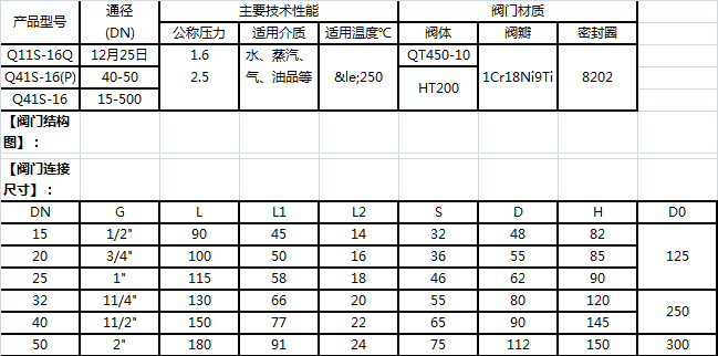 【Q11S絲扣高溫球閥】吸取國(guó)外高溫球閥結(jié)構(gòu),結(jié)合國(guó)力實(shí)際情況研制而成,連接尺寸符合國(guó)家標(biāo)準(zhǔn)。 Q11S絲扣高溫球閥密封圈具有高強(qiáng)度、高耐磨、回彈性強(qiáng)等優(yōu)點(diǎn),故密封可靠、使用壽命長(zhǎng),大量用于石油、化工蒸氣等管道介質(zhì)流動(dòng)的啟閉器。 Q11S絲扣高溫球閥在使用中要求將閥門全開或全關(guān),不允許將閥門部份開啟作為調(diào)節(jié)流量,否則在介質(zhì)流速較高時(shí)易使密封面損壞。 【閥門用途】:    Q11S絲扣高溫球閥適用于蒸汽、水、油品、氣、氨等介質(zhì)管道上,作為介質(zhì)流動(dòng)的啟閉器用,具有密封好、壽命長(zhǎng)、維修易、操作輕等優(yōu)點(diǎn),最大工作溫度可達(dá)-20℃&mdash;250℃度對(duì)堵塞跑,冒,滴,漏,節(jié)約能源有明顯的效果。 【閥門特點(diǎn)】: (1)流體阻力小,全通徑的球閥基本沒有流阻。 (2)結(jié)構(gòu)簡(jiǎn)單、體積小、重量輕。 (3)緊密可靠。它有兩個(gè)密封面,而且目前球閥的密封面材料廣泛使用各種塑料,密封性好,能實(shí)現(xiàn)完全密封。在真空系統(tǒng)中也已廣泛使用。 (4)操作方便,開閉迅速,從全開到全關(guān)只要旋轉(zhuǎn)90&deg;,便于遠(yuǎn)距離的控制。 (5)維修方便,球閥結(jié)構(gòu)簡(jiǎn)單,密封圈一般都是活動(dòng)的,拆卸更換都比較方便。 (6)在全開或全閉時(shí),球體和閥座的密封面與介質(zhì)隔離,介質(zhì)通過時(shí),不會(huì)引起閥門密封面的侵蝕。 (7)適用范圍廣,通徑從小到幾毫米,大到幾米,從高真空至高壓力都可應(yīng)用。 (8)由于球閥在啟閉過程中有擦拭性,所以可用于帶懸浮固體顆粒的介質(zhì)中。