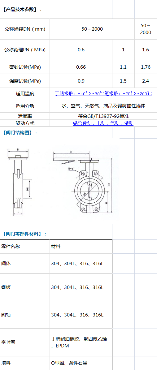 D71X不銹鋼蝶閥】采用雙偏心結(jié)構(gòu),具有越關(guān)越緊的密封功能,密封性能可靠。密封副材料選用不銹鋼和丁腈耐油橡膠配對(duì),使用壽命長(zhǎng)。橡膠密封圈即可位于閥體上,也可以位于蝶板上,可適用不同特點(diǎn)的介質(zhì),供用戶選擇.【D71X不銹鋼蝶閥】蝶板采用框架結(jié)構(gòu),強(qiáng)度高,過流面積大,流阻小。整體烤漆、能有效地防止銹蝕且只要更換密封閥座密封材料,就可使用于不同介質(zhì)。本閥具有雙向密封功能,安裝時(shí)不受介質(zhì)流向的控制,也不受空間位置的影響,可在任何方向安裝。本閥結(jié)構(gòu)獨(dú)特,操作靈活,省力,方便。 【閥門用途及特點(diǎn)】:  【D71X不銹鋼蝶閥】采用對(duì)夾中心板式結(jié)構(gòu),主要由閥體,閥板,閥軸,閥座及傳動(dòng)裝置組成,廣泛用于水廠、電廠、鋼廠、造紙、化工、輕紡、食品等給排水、氣體管道上作調(diào)節(jié)流量和截流介質(zhì)的作用。 1、本閥采用雙偏心結(jié)構(gòu),具有越關(guān)越緊的密封功能,密封性能可靠。 2、密封副材料選用不銹鋼和丁腈耐油橡膠配對(duì),使用壽命長(zhǎng)。 3、橡膠密封圈即可位于閥體上,也可以位于蝶板上,可適用不同特點(diǎn)的介質(zhì),供用戶選擇。 4、蝶板采用框架結(jié)構(gòu),強(qiáng)度高,過流面積大,流阻小。 5、整體烤漆、能有效地防止銹蝕且只要更換密封閥座密封材料,就可使用于不同介質(zhì)。 6、本閥具有雙向密封功能,安裝時(shí)不受介質(zhì)流向的控制,也不受空間位置的影響,可在任何方向安裝。 7、本閥結(jié)構(gòu)獨(dú)特,操作靈活,省力,方便。